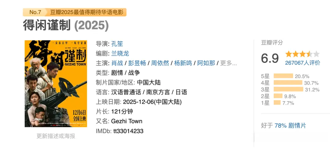 在一众的电影中,12月份竟然找不到一部能够上5亿的国产电影,最好的票房成绩,恐怕还是要落在了国产战争题材《得闲谨制》上了。