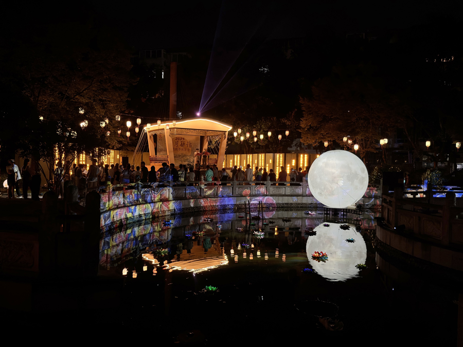 作为“诗的国度”,中国历来崇尚以诗寄情。朱泾的诗词文化也是源远流长,船子和尚、“云间三诗人”、彭鹤濂等皆留下传世名篇。当晚,《春江花月夜》《水调歌头·中秋》等经典诗作被重新吟唱,古音今唱,韵味悠长。