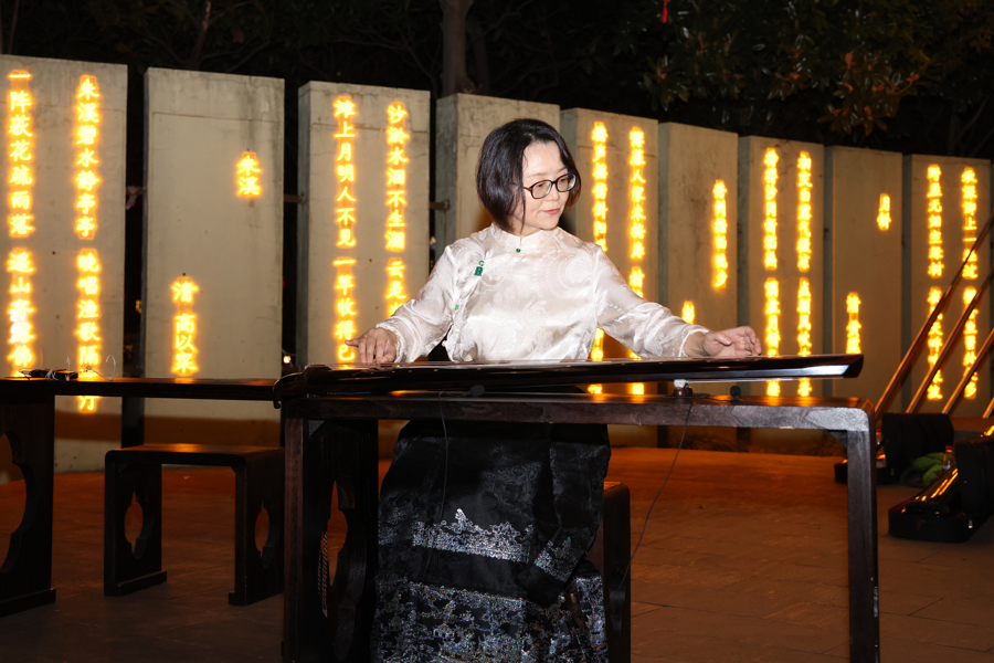 诗会现场,《渔歌》《关山月》《酒狂》《仙翁操》《石上流泉》等经典琴曲轮番上演,琴音或宁静旷远,或清灵恬淡,将观众带入诗情画意的意境中。“非遗”雅韵与中秋氛围相得益彰,传递出深厚的艺术感染力。