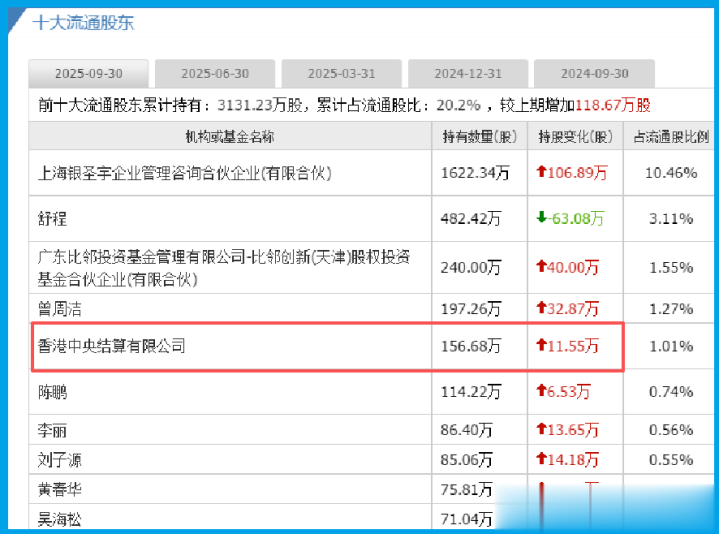 香港中央结算有限公司位列第五大流通股东,这个信号值得关注。